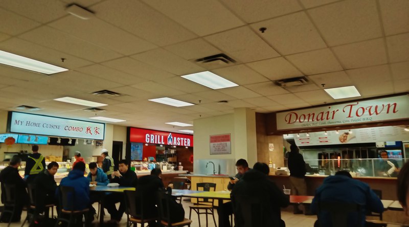 University blvd.沿いAllison Rd.の角にある建物の地下は「International Food Court」と書いてある,いろんな店が集まったフードコートだよ。周辺の小ぎれいな店とは一線を画す,多国籍空間だよ。学生御用達。安い。お昼時を少し外して,工事の人とか,近所の人とかも来てる。