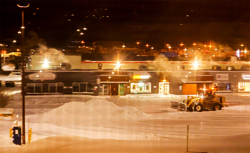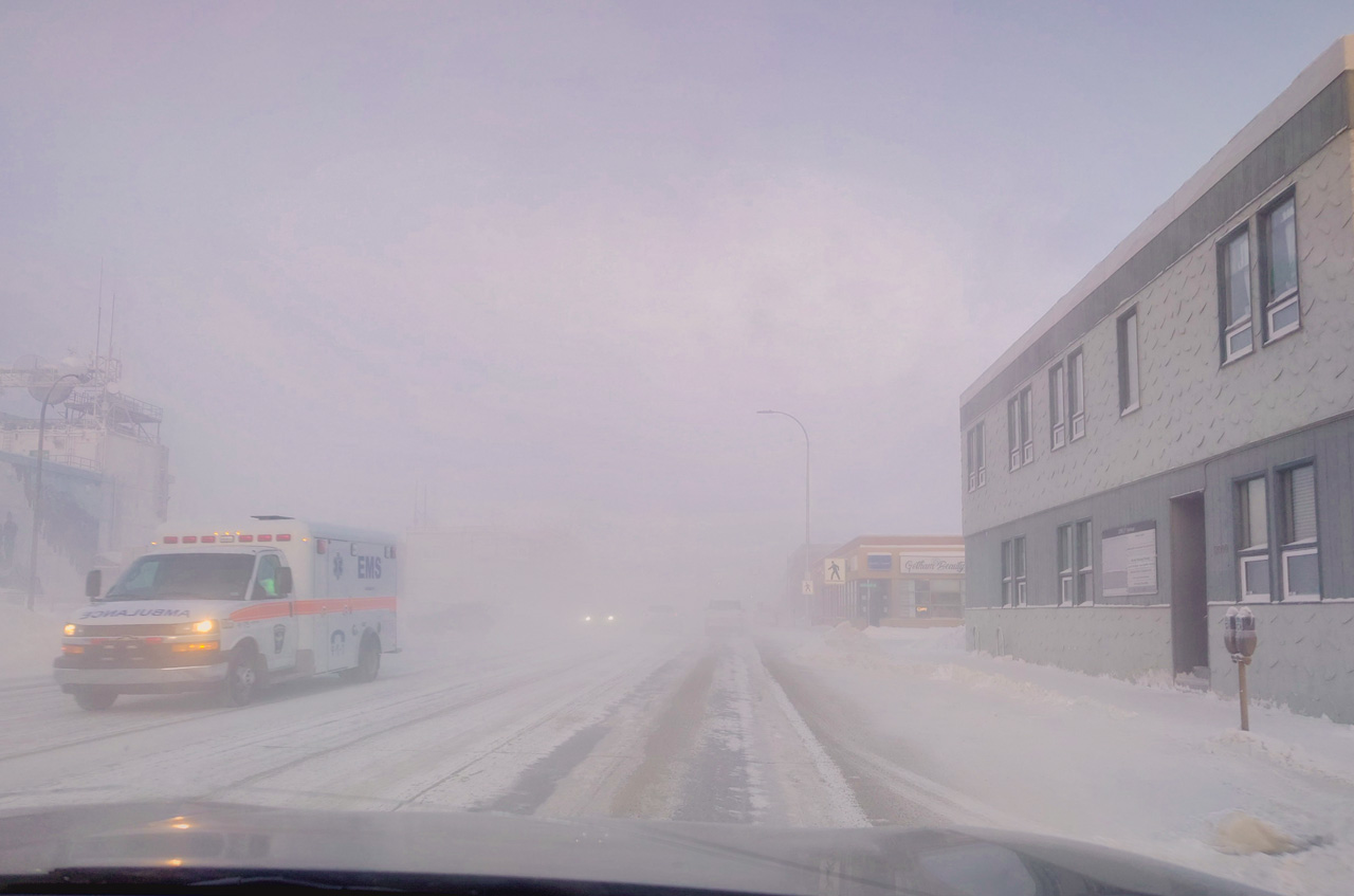 雪がパウダースノーどころか煙のように舞うので,前がよく見えない。車間距離を取らないと全然見えない。特に夜は何も見えない。しかも1日のほとんどが夜。