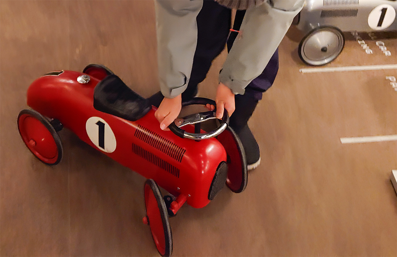子どもには,どんな展示物より,ハンドルを操作できるミニカーを駐車スペースに入れるのが一番楽しい展示だったみたいだよ。