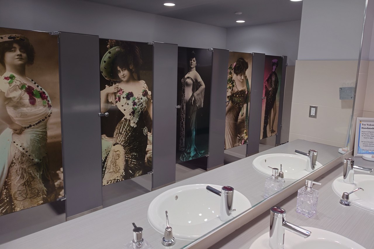 最初はみんなでちびちび砂金をすくってたのに,結局は,泥かき集めふるい大型船で2社で何もかも取りつくしていくのは,資本主義の縮図のようで興味深かったよ。写真は当時のスターたち(女子トイレ内の展示)
