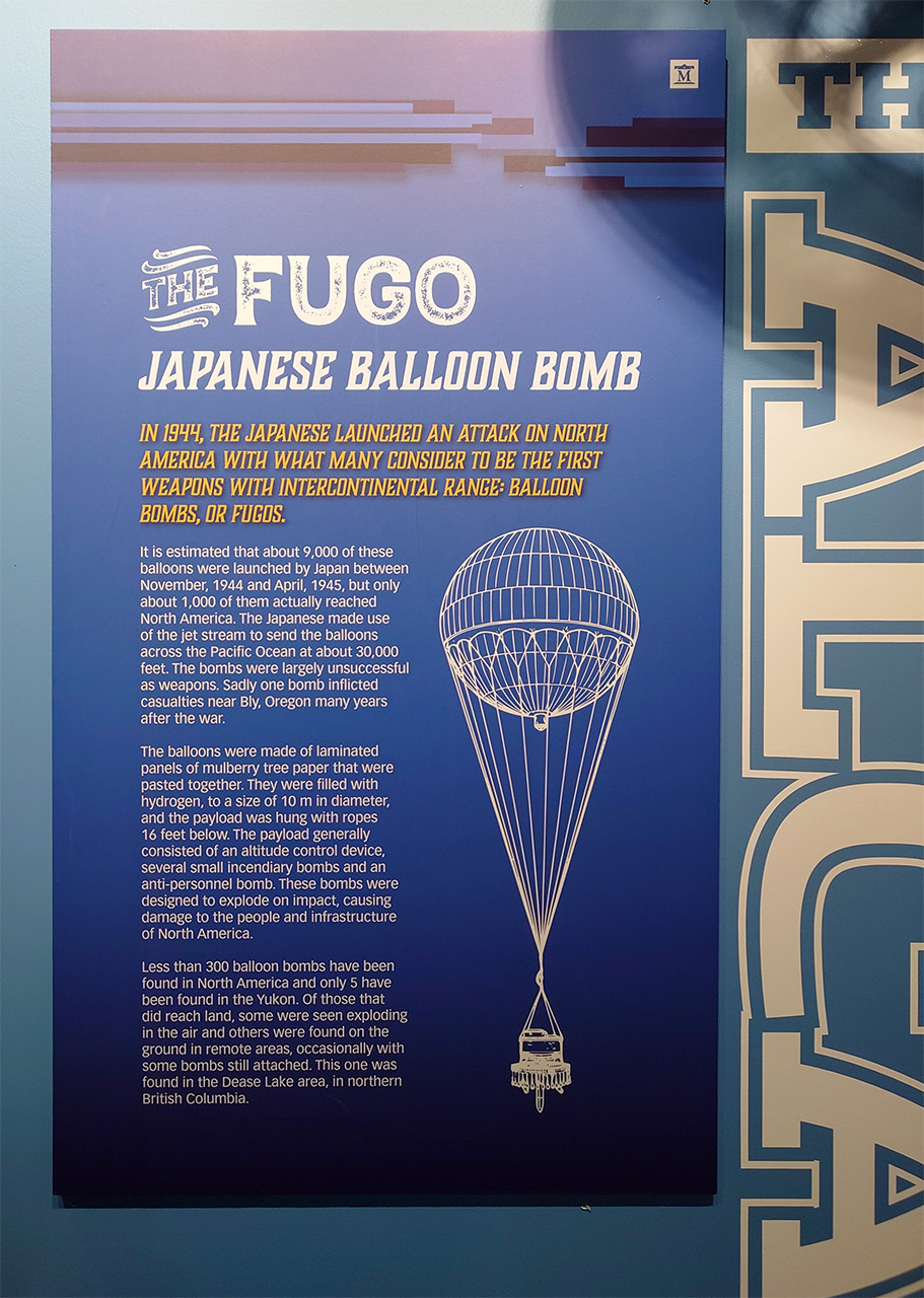 The ALCAN Highwayことアラスカ高速道路にしろ,ホワイトホース空港にしろ,ここらの大規模インフラは,日本のアリューシャン列島攻撃はじめ対米戦に備えて米軍がこしらえたものだから,そういう文脈の展示も多々あったよ。