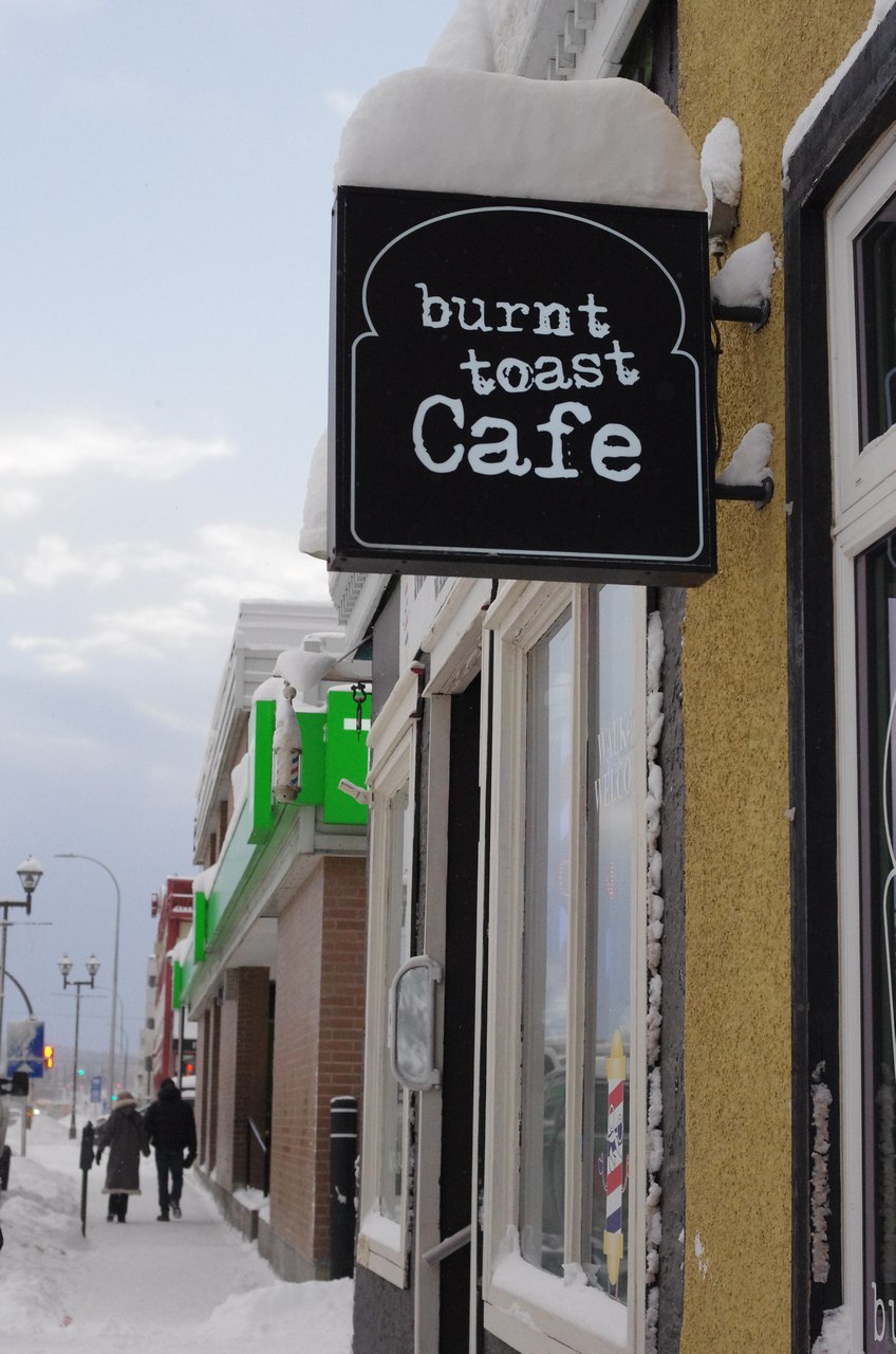 ダウンタウンのBurnt toast Cafeは,北国らしい素朴な感じの喫茶店だよ。