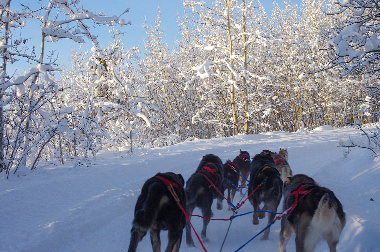 犬たちは走ると暑いらしく,隙あらば道端の雪を食べながら走っていたよ。