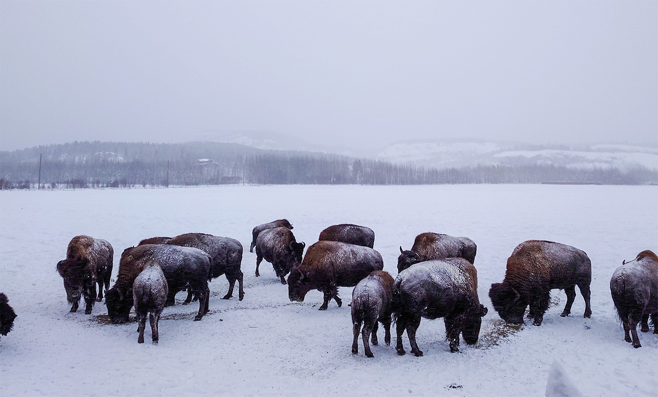 バイソンやら,めちゃでかいムースやら,あれこれガイドのおっちゃんが楽しく解説してくれるけど,そもそも英語がよくわからない上に,それよりなにより寒くて寒くて,見てる場合じゃなかったよ。他のお客さんも最初はウキウキ,バスから出ては見物してたけど,だんだん元気がなくなって,すぐにバスに戻ってくるようになったよ。